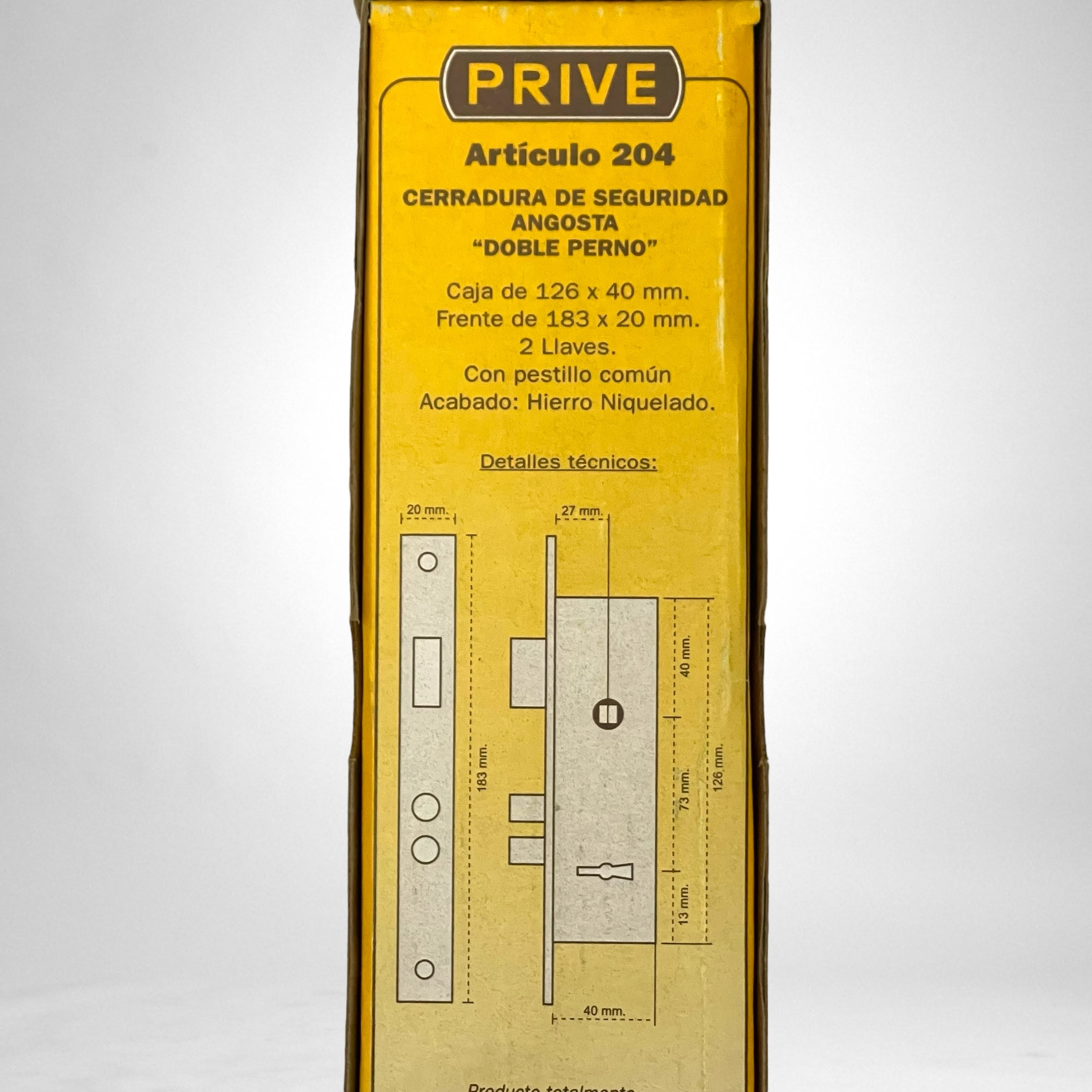 Prive 204 cerradura de seguridad 2 pernos caja 65mm frente hierro zincado.