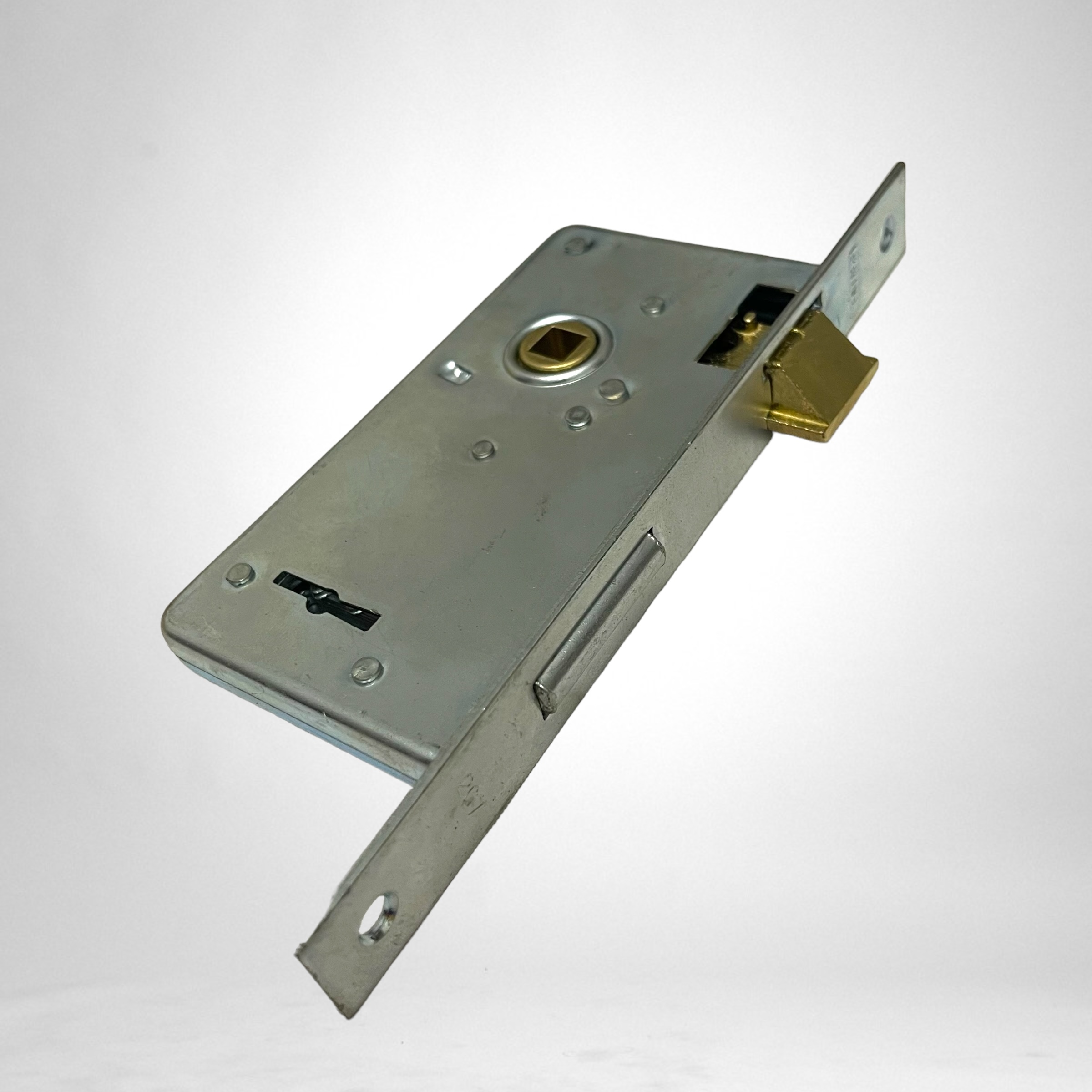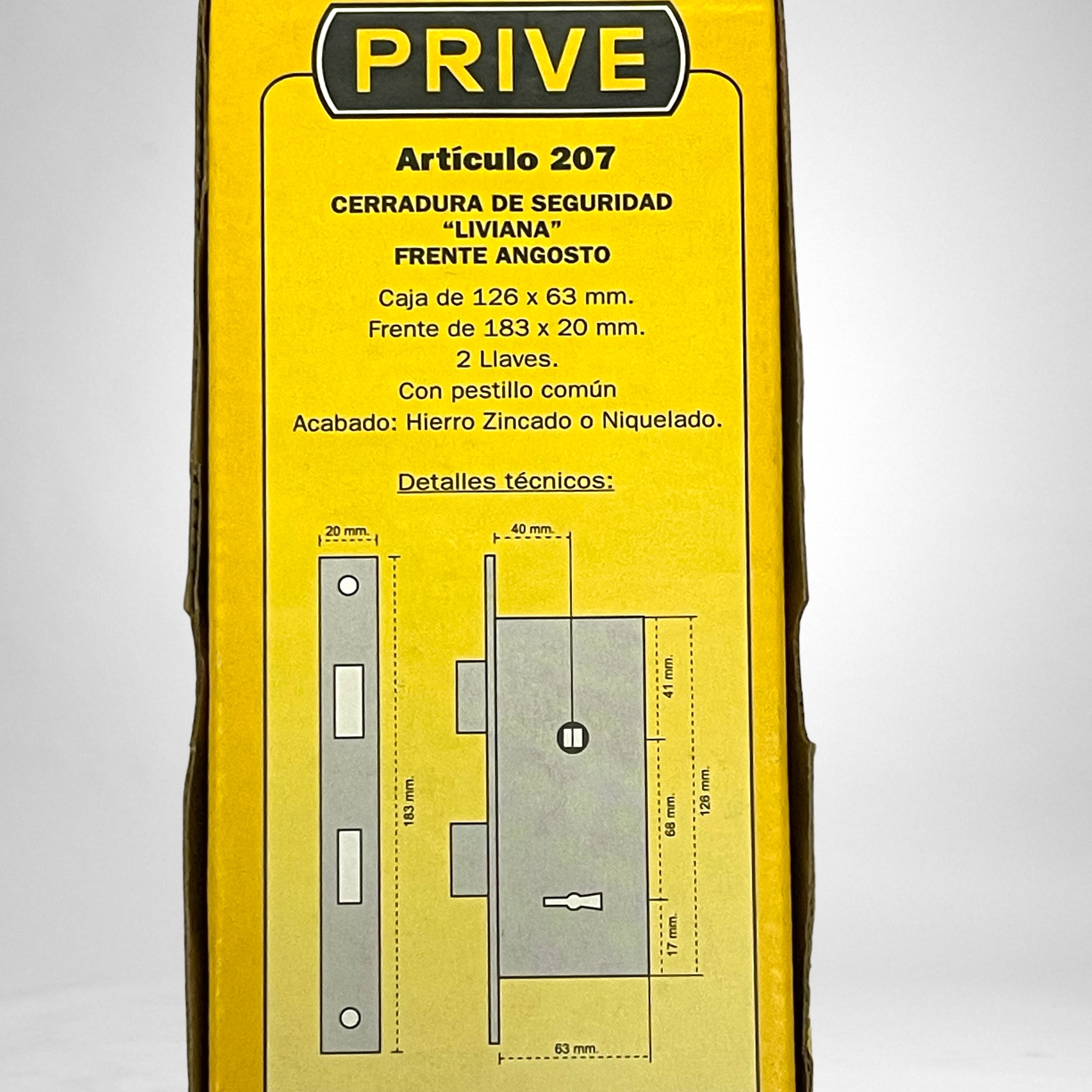 Prive 207 cerradura de seguridad frente corto pasador rectangular caja 65mm frente hierro zincado.